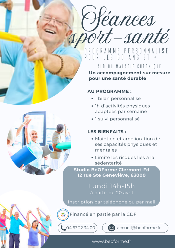 Nouveau chez BeOForme : un programme Forme & Santé dédié aux 60 ans et , atteints d’ALD ou de maladies chroniques Chez BeOForme, nous avons à cœur d’accompagner chacun à chaque étape de la vie. C’est pourquoi nous lançons un tout nouveau cours spécialement conçu pour les 60 ans et plus atteints d’ALD ou de […]