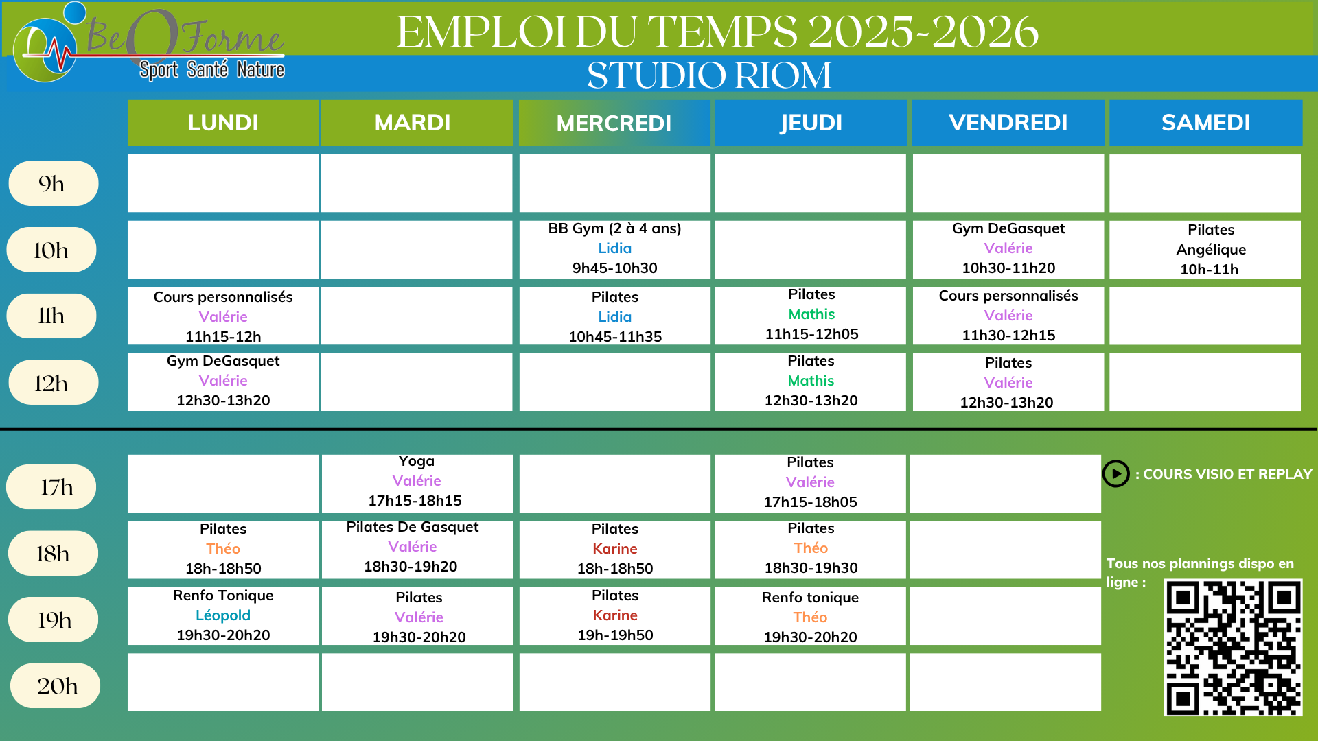 - Pour ce qui est de la Visio, nous continuons de proposer des séances en direct et en replay.